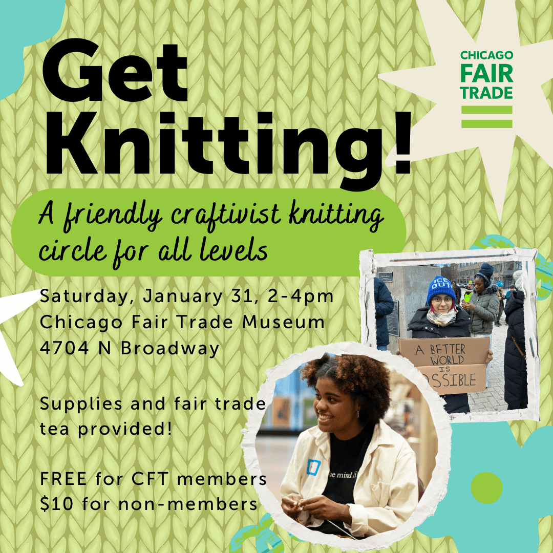 Beginners and seasoned stitchers alike are invited to join Chicago Fair Trade’s cozy craftivist knitting circle!